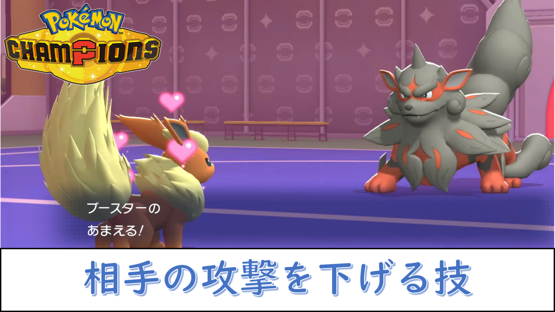 『ポケモンチャンピオンズ』で使用可能な、相手の攻撃ランクを下げる効果のある技は次の通りです。