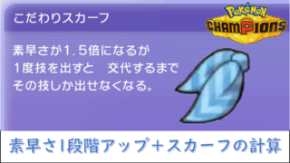 道具データ 「素早さ2段階上昇」より「素早さ1段階上昇+こだわりスカーフ」の方が速い!【ポケモンチャンピオンズ】