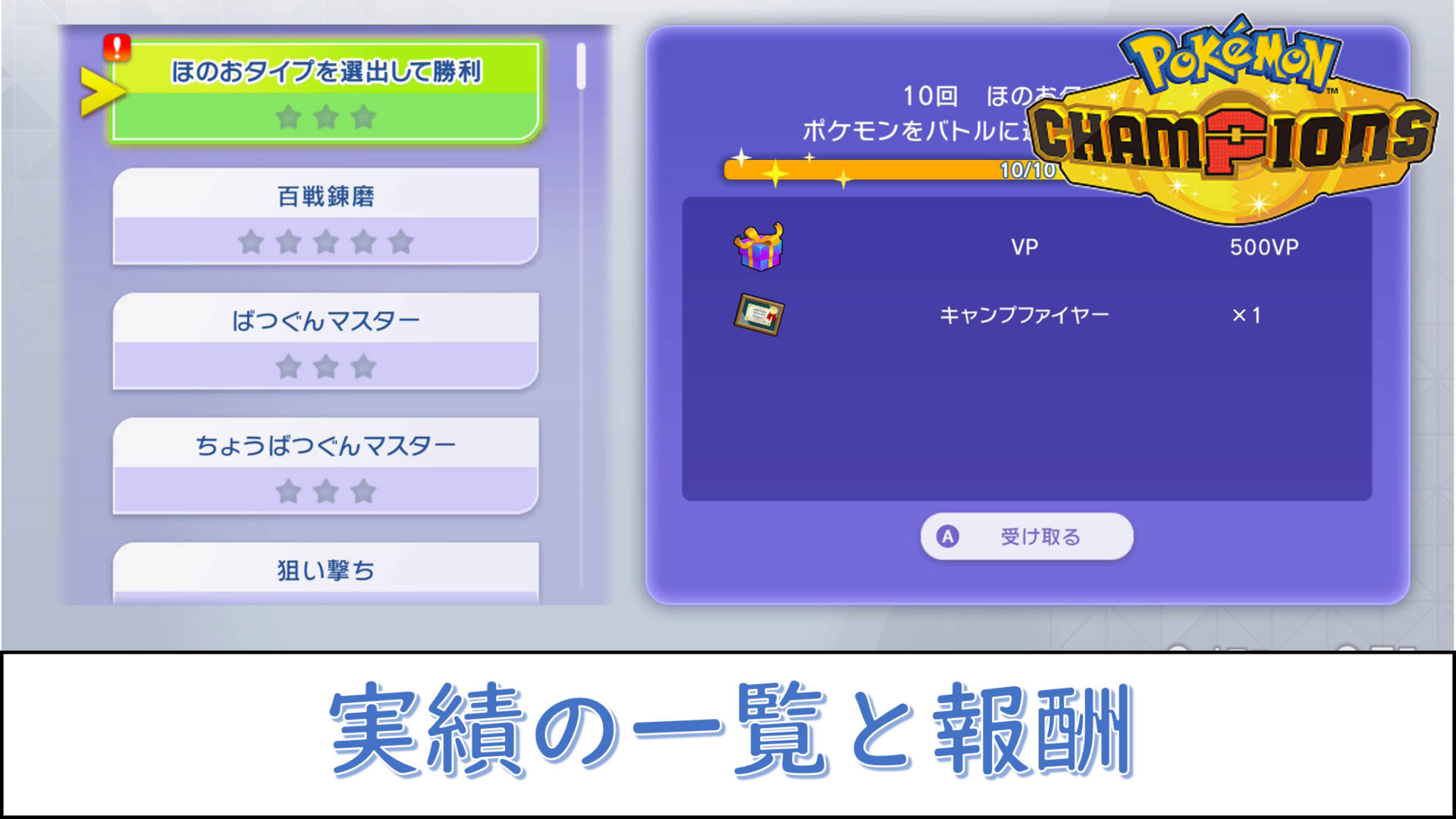 獲得できる実績の一覧と報酬【ポケモンチャンピオンズ】