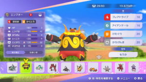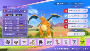下の画像では画像左上に「ひとになれてる リザードン」と表示されています。