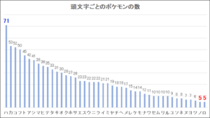 ポケモンの頭文字を多い順に並べると、下のグラフのようになります。