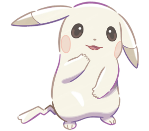白っぽい、ふしぎな毛色のピカチュウです。通常のピカチュウと比べると耳が垂れていて、どことなくはかなさがあります。