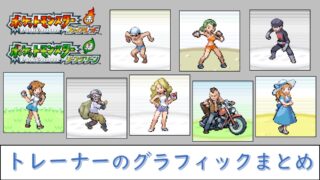 全般データ 登場するトレーナーのグラフィックまとめ【ファイアレッド・リーフグリーン】 『ファイアレッド・リーフグリーン (FRLG)』には、様々なポケモントレーナーが登場します。今回は、トレーナーのグラフィックをまとめました。FRLGに登場するトレーナーライバルライバルとはストーリーに何度も戦うことになり、序盤・中盤・終盤で... 2026.03.10 ファイアレッド・リーフグリーン全般データ