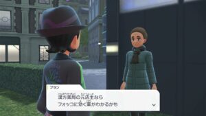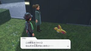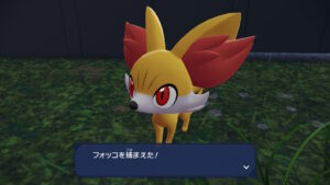 先ほどの女性に話しかけるとイベントが進んで依頼達成となり、フォッコが入手できます。