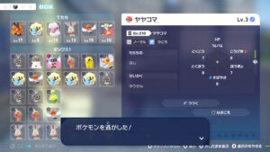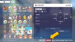 選んだポケモンをまとめて移動させるにはYボタン、まとめて逃がす場合はポケモンをXボタンを押します。